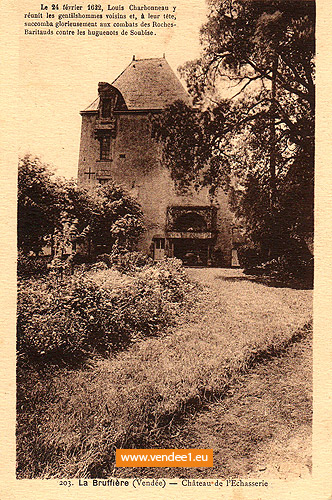 Le 24 février 1622 au Château de l’Echasserie, Louis Charbonneau y réunit les gentilshommes voisins, et à leur tête succomba glorieusement au combat des Roches Baritauds contre les Huguenots de Soubise